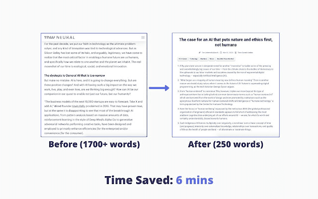 This great Chrome extension gives you the ability to cut through massive blocks of content to find out what you really must know. With one-click, you can see the key takeaways on the right side of your screen.