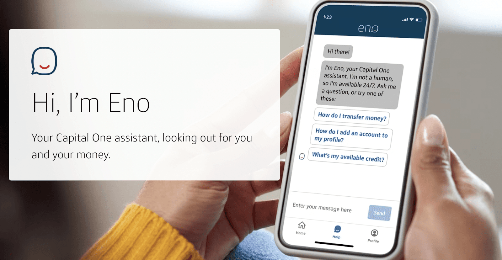 Capital One's intelligent assistant, Eno, can provide customers with real-time account information, help track spending, and even share a witty pun when you need a chuckle—because who said finance always has to be serious?