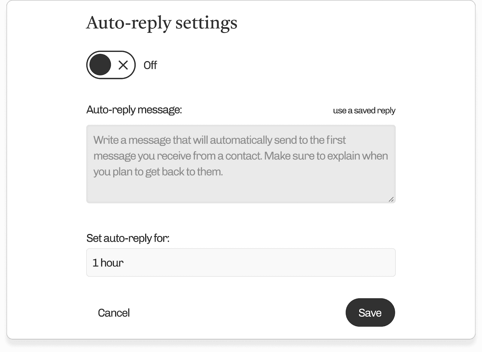 Include answers to frequently asked questions and relevant information such as vacation mode details if applicable. Don’t forget, once you're done drafting to make sure you save and activate your auto-reply message so it’s ready for use.