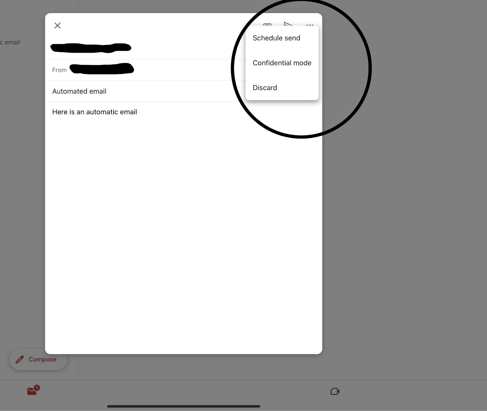 In the upper right part of the compose screen, you'll see 3 dots. Click on them to bring up another window.