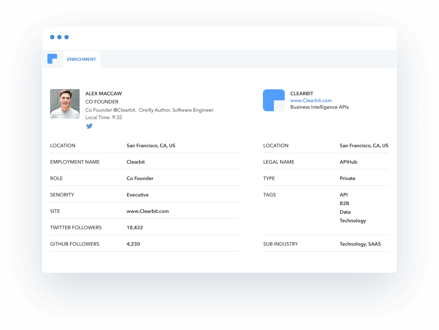 One user shares, "Clearbit is a good platform to get quality B2B data for new business development. Being a part of the sales team I need to work on new data all the time in order to get more new business. I am using Clearbit because the quality of data they have is great."
