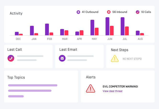 By the nature of their jobs, salespeople capture a lot of data about customers and potential customers in the pipeline. But trying to sort that and learn from it? That's a full-time job on its own. Unless you use automatio. Gong.io grabs data from emails, phone calls, video calls, and more to deliver learning insights.