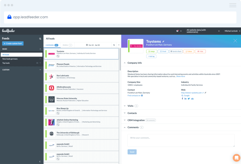 As one user put it, "Leadfeeder plays a pivotal role in our lead generation program. With a Salesforce integration, we're able to understand activity related to target accounts and engage them accordingly. Also implementing our Mailchimp EMS, we can see when campaigns are pushing specific accounts and contacts to our site vs. google and paid search."