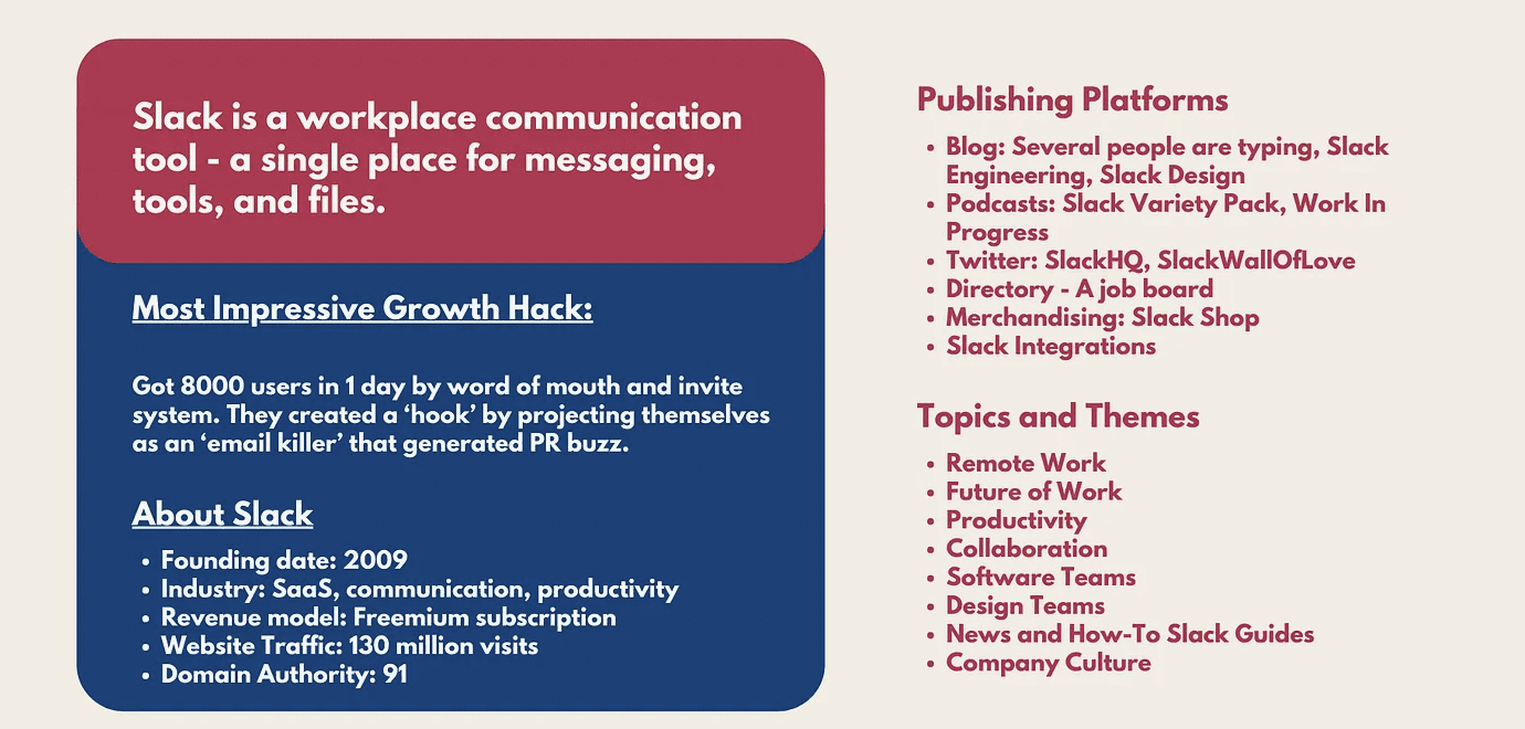 They focused on presenting their platform as a value proposition that could enhance productivity and collaboration within teams. To promote their product, Slack leveraged content marketing, creating an array of engaging and informative resources that showcased the value and functionality of their platform. This approach helped them build a strong user base, leading to an impressive growth in their B2B sales.
