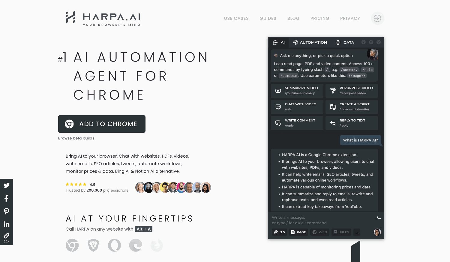 Imagine if AI could monitor websites in real-time for you to look for things like price drops, page updates, and more. Super cool—and super useful. The Harpa AI Chrome extension lets you track and monitor individual elements on websites so you don’t have to keep checking back again and again to see when those flight tickets finally become affordable. 😅