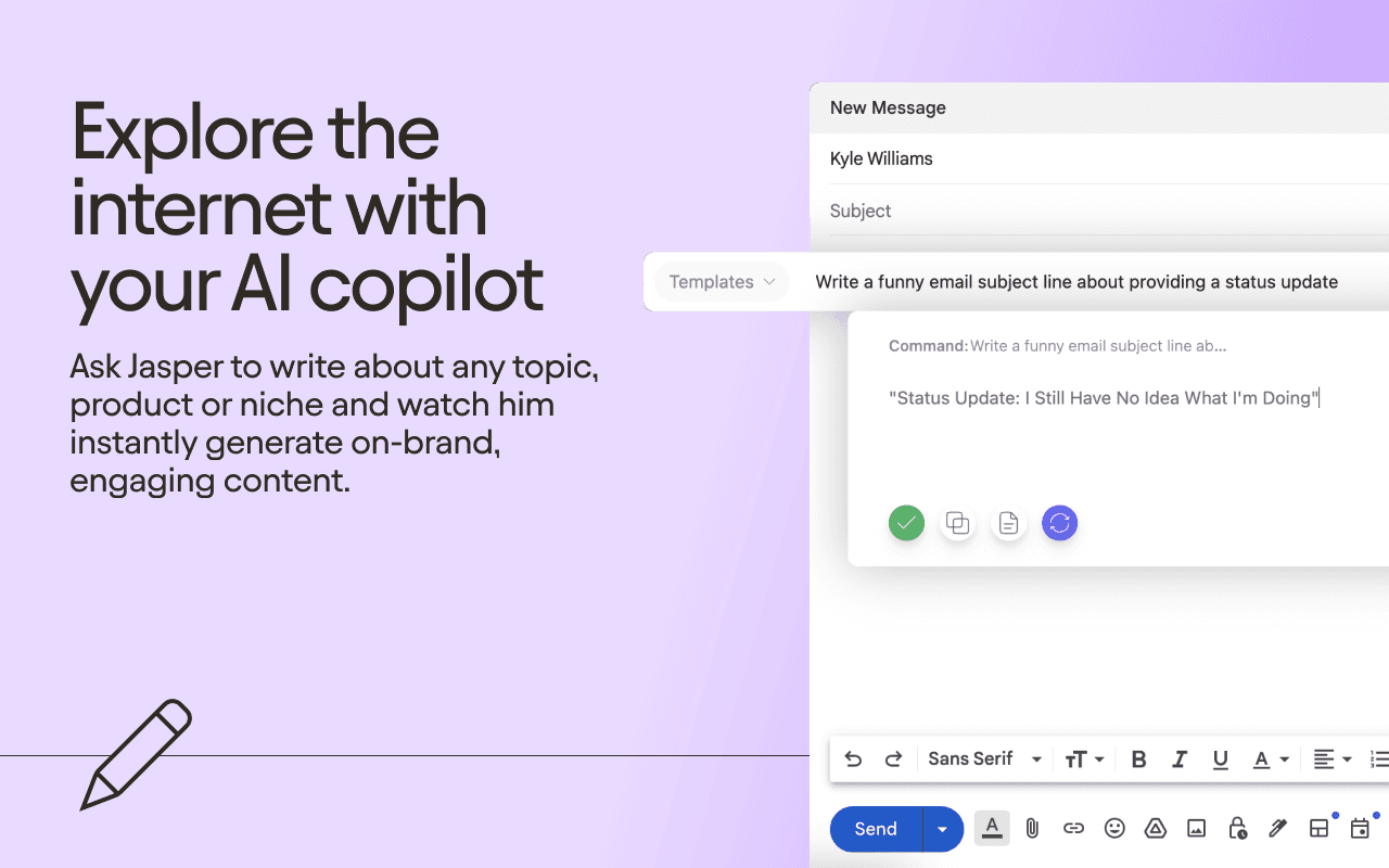 With the Jasper AI Chrome extension, linguistic barriers are a thing of the past. You can ask Jasper to write about any topic, product, or niche and watch as it instantly generates plagiarism-free content right in your browser.