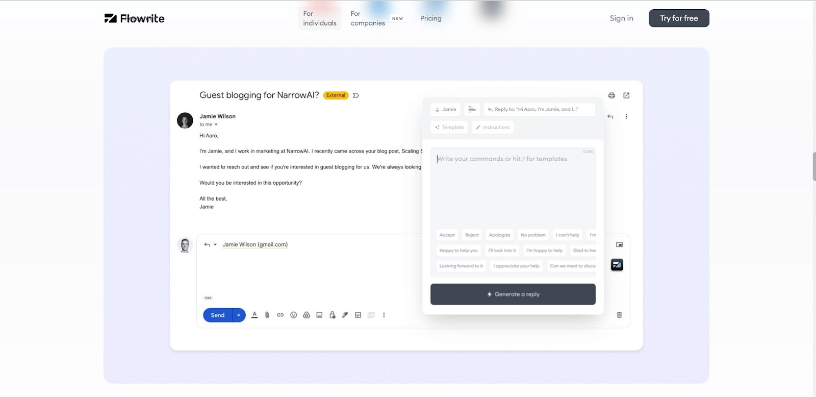 Flowrite is an e-mail writer that writes emails and messages across Chrome. Emails, replies to messages, you name it it writes it. It works within your programs and offers a wide range of templates to choose from.
