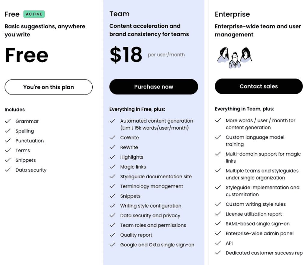 Writer also offers Enterprise plans, but you’ll need to contact their sales team directly for a quote.