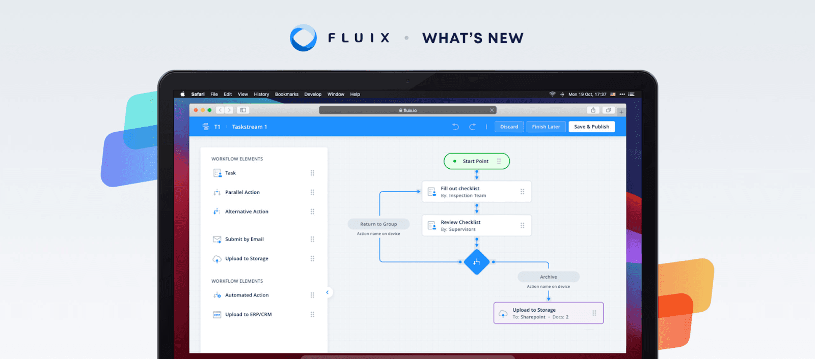 Fluix’s workflow management system was developed with extensive research into use cases for various industries, making it one of the best data entry software solutions for field and office teams. The application's no-code environment lets you create apps with a drag-and-drop builder—you can create apps for automating data entry or to automate tasks in your everyday workflow (like inspections, surveying, people management, and much more.)