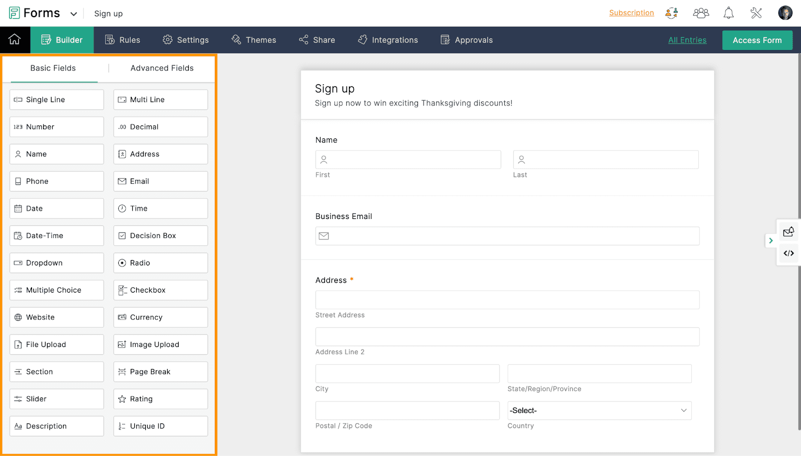 Zoho Forms also has various collaborative features. You can share your forms with your team via email, social media, or by inserting them in a webpage. And you can also integrate your forms with other business apps, like your CRM or helpdesk programs.