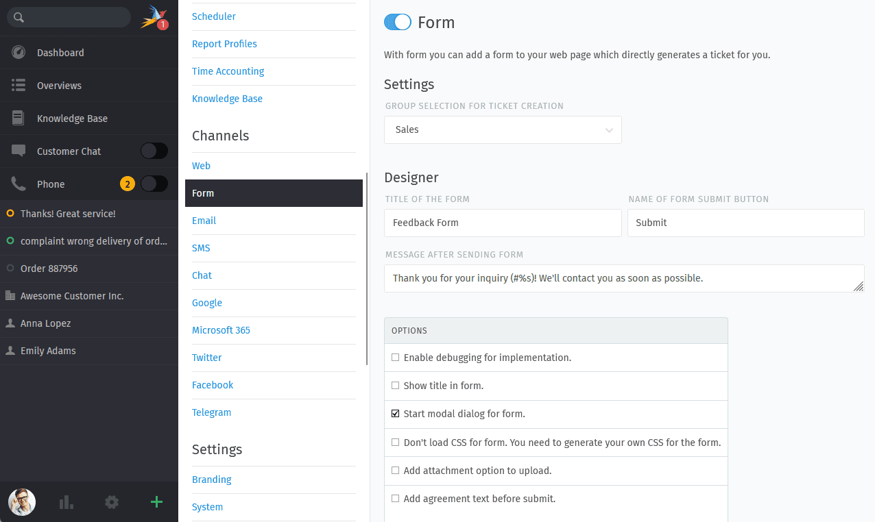 Zammad consolidates communications from various channels, including email, social media, web forms, and chat, into a single, unified platform. This ensures that no customer queries are missed and allows support teams to provide a cohesive response experience across all touchpoints.