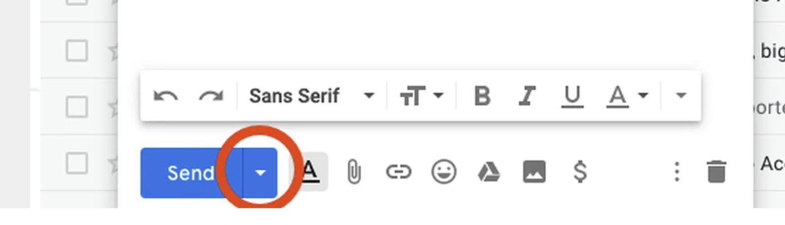 Simply compose an email as usual. Then click on the triangle next to the send button.