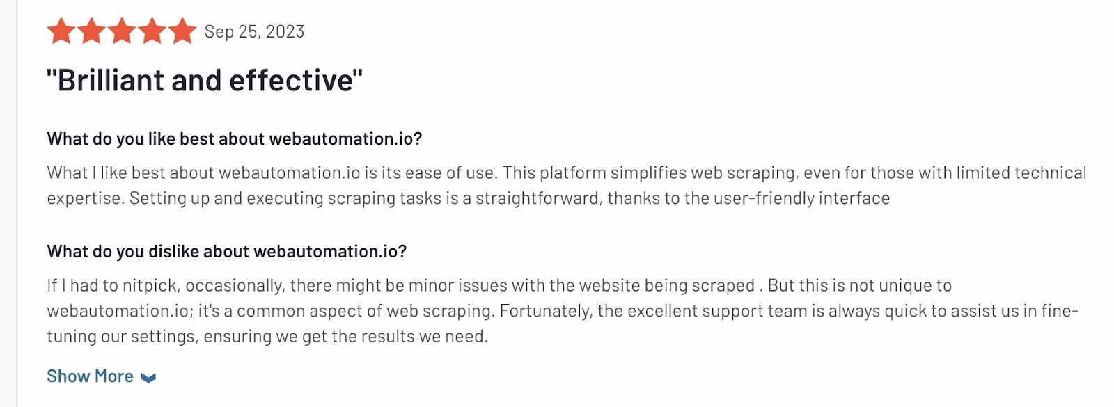 If you need a powerful scraper for multiple platforms, or have research-oriented tasks, then WebAutomation is an excellent choice. The tool is also GDPR compliant and follows best practices for ethical scraping.
