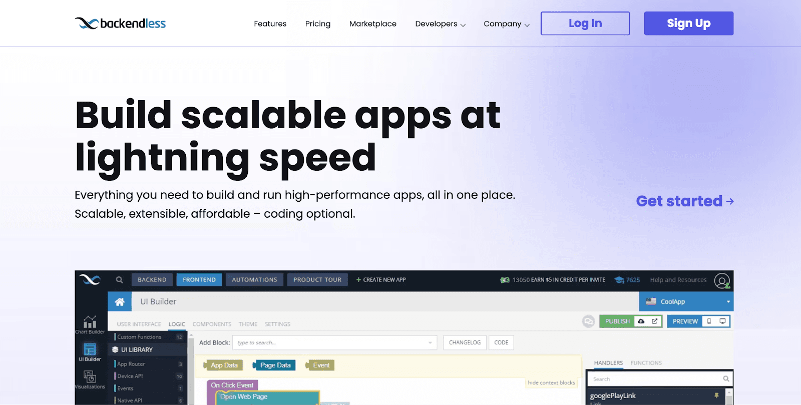 Key Features: Backendless offers a comprehensive no-code backend-as-a-service (BaaS) platform, providing real-time database management, user authentication, and serverless functions. It simplifies the development process by handling backend operations, allowing users to focus on building the front-end. Its robust features make it ideal for creating scalable applications.