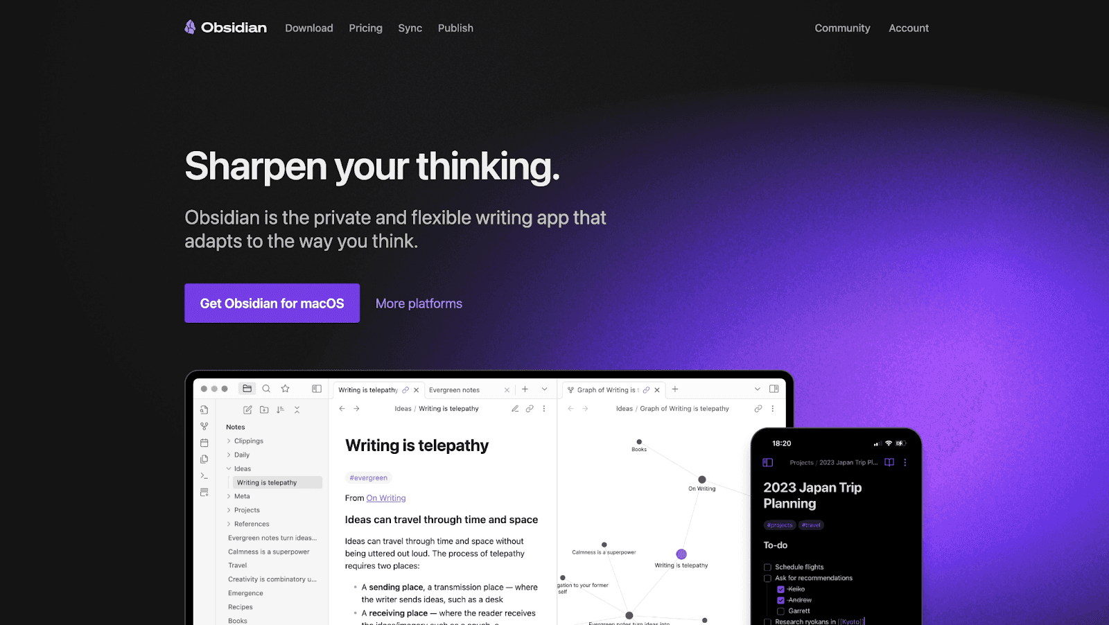 This platform isn't just about personal use; team members who prefer markdown files will find collaboration seamless here. While Obsidian's free plan may not offer as many integrations as its paid counterparts like Coda or Upbase, it still provides a range of advanced features that make it an excellent productivity tool for individuals.