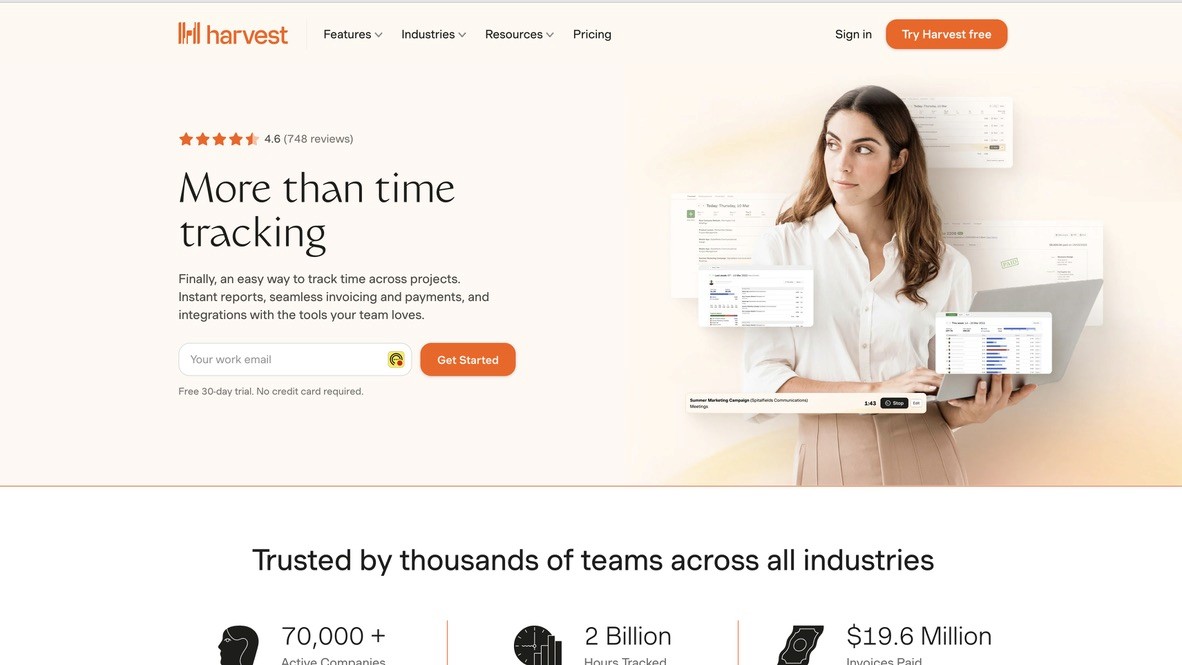 Harvest is a time tracking and invoicing tool known for its simplicity and effectiveness in managing work hours and project billing. It offers easy-to-use time tracking for both individual tasks and larger projects and detailed reports providing insights into project time and budget status.