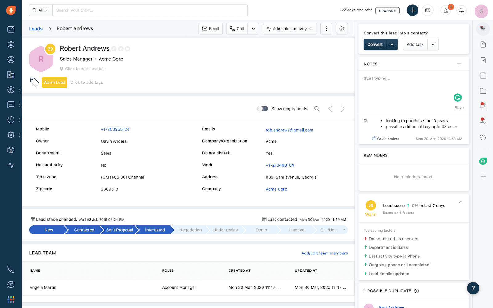 Sometimes what you need is something intuitive—a system where the learning curve feels more like a gentle slope. Freshsales by Freshworks, offers such an experience with its user-friendly interface complemented by smart AI capabilities that help sales teams prioritize leads effectively.
