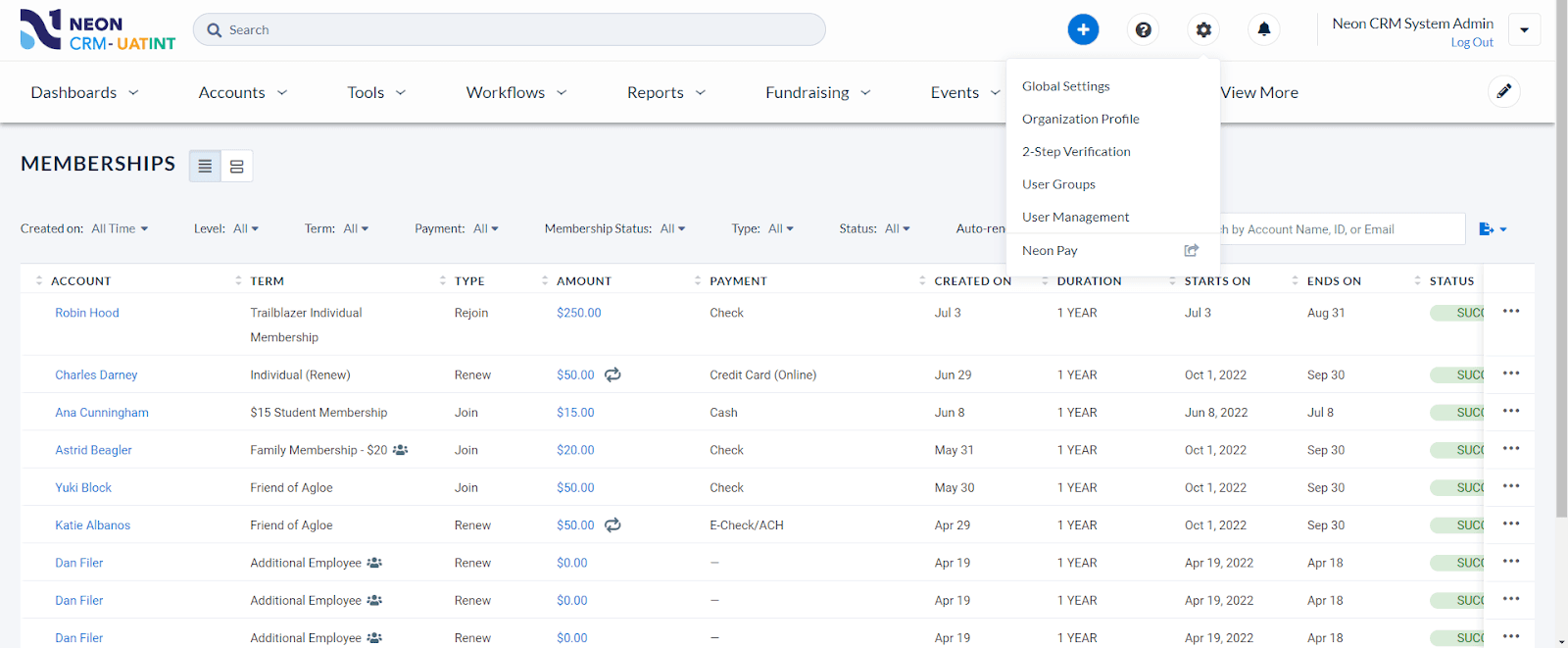 At its core, Neon One includes CRM functionality tailored for nonprofits. It enables organizations to manage all their constituent relationships in one place, including donors, members, volunteers, and other stakeholders. The platform provides detailed records for each contact, including interaction history, giving history, event participation, and custom fields to capture specific data points.