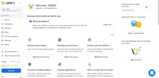 Apify is a cloud-based platform that offers a comprehensive suite of web scraping and automation tools, positioning itself as a versatile alternative to Scrapy. While Scrapy is an open-source framework requiring a more hands-on approach for web scraping projects, Apify provides a more accessible solution with its ready-to-use actors, task automation capabilities, and managed infrastructure.