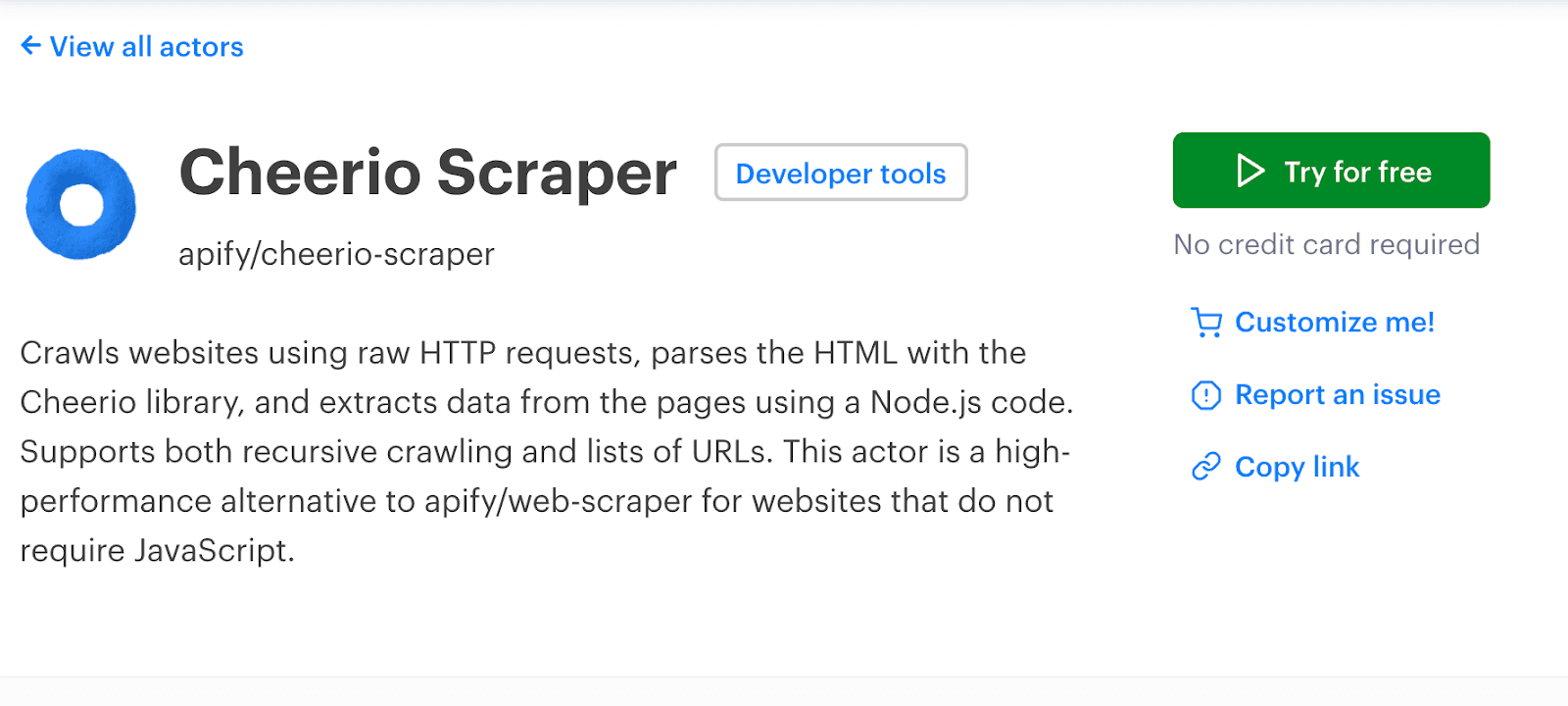 While Apify and some alternatives offers tools for non-developers, it also provides a flexible platform for coders. Users can write their own actors using JavaScript (Node.js), offering the ability to create custom and complex scraping and automation solutions.