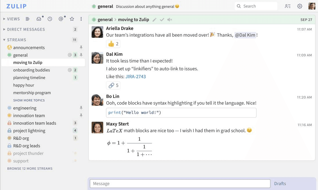 Consider Zulip, which takes email-style threading to new heights within its interface. Users can enjoy threaded conversations that allow them to jump in and out of different topics without losing context—a game-changer for those who've experienced the chaos of unthreaded chats. This approach ensures no message gets lost in the shuffle and each conversation remains focused and searchable.