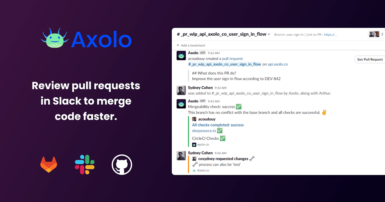 Axolo is tailored for engineering teams using GitHub, aiming to streamline code review and collaboration processes within Slack. It focuses on improving the efficiency of pull requests and code reviews, enhancing team productivity.