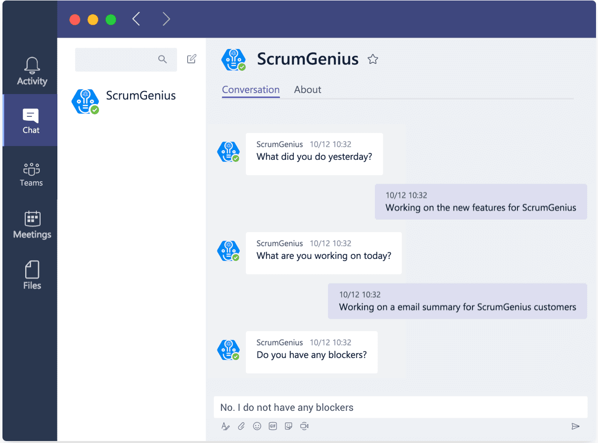 Scrum Genius makes the work easy and efficient for the team lead position people . The best part I had found in is it automates all the type of Chats , Files , Group Meetings from multiple Persons in different remote locations. It meets all my day to day functionalities where I can held upstand meetings with my team members according to daily and weekly basis.