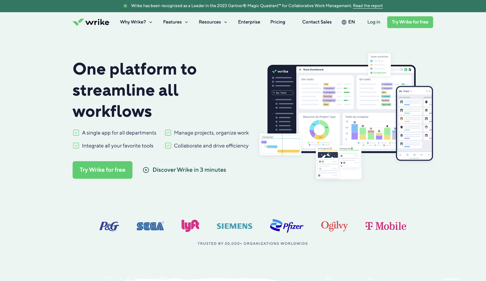 Wrike is a versatile cloud-based project management and collaboration tool designed to help teams organize their projects, tasks, and workflows efficiently. It's known for its comprehensive set of features that cater to a wide range of business needs, from small teams to large enterprises.