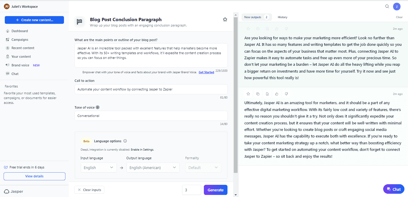 Jasper AI, even though positioned as one of the more powerful conversational platforms out there for businesses with over 100k users, also has areas where improvement could be made.