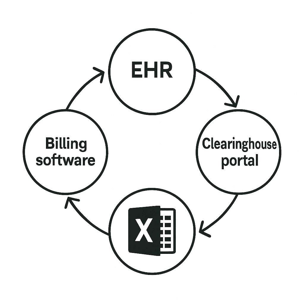 Toggling between tabs. Copy-pasting patient data. Re-entering the same insurance info into multiple platforms. Fixing someone else’s typo. Hunting for a chart note. Calling a payer. Repeating the process.