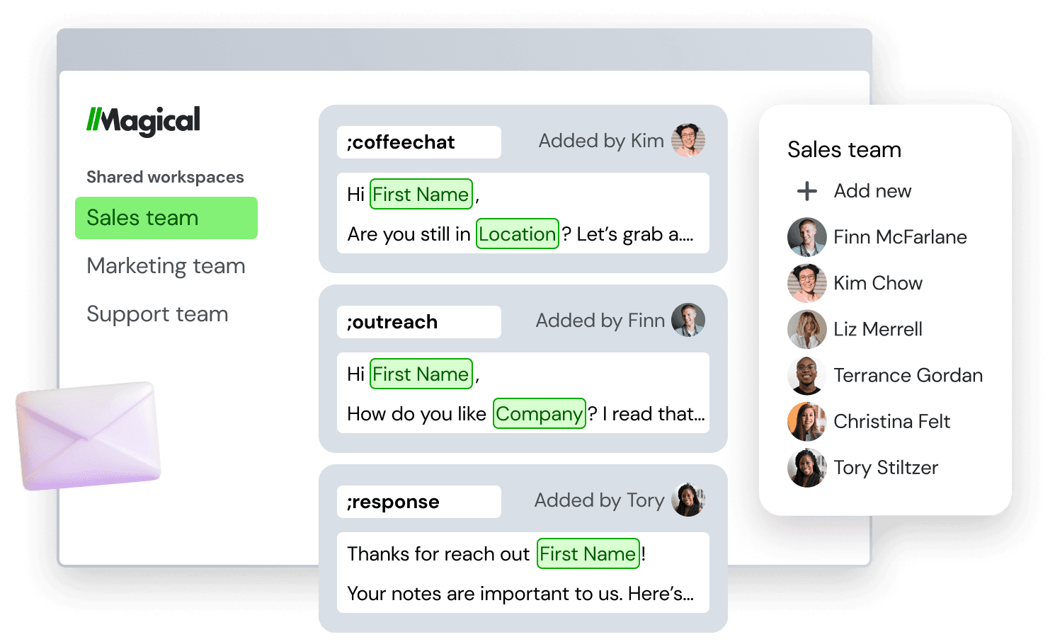 One of the best ways you can help your outsourced customer support be more successful is by automating as much as possible for them and using tools to make it easy for them to interact with customers the way you want them to. Over 20,000+ companies use Magical, for example, to standardize the message templates their customer support teams use when interfacing on repetitive customer issues. With Magical, you can create a shared library of your best messages so anyone can jump in and start answering questions using the correct terminology and tone of voice.