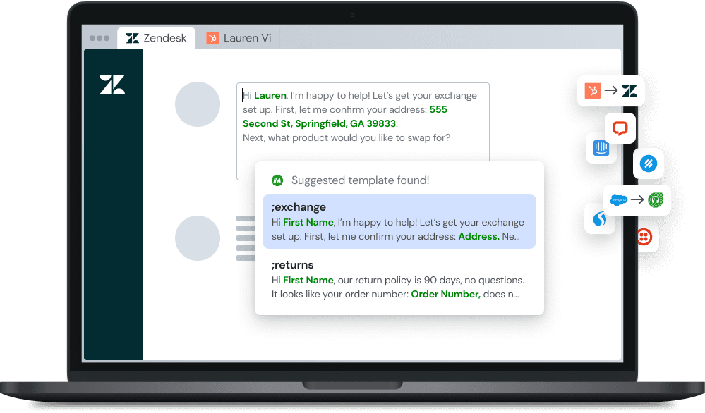You can use Magical across email, social channels, and even customer support platforms like Zendesk. Your team simply needs to select the template that fits the situation, and Magical will instantly personalize it with the details of your customer.