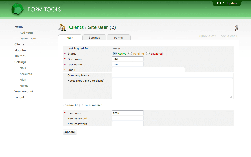 The forms in Form Tools come in lots of different shapes and sizes. You can use the platform to create your own forms directly on your website, develop forms offline using PHP, or even connect to existing forms. You can gather all sorts of data, download and visualize it, export it to your CRM, HRM, or analytics tools, or just keep track of it in Form Tools.