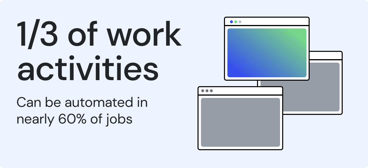 And it’s not like it can’t happen, either. Research from McKinsey shows that ⅓ of work activities can be automated in nearly 60% of jobs. So why are we wasting so much of our precious time on this type of repetitive, copying and pasting, completely soul-crushing type of work? And how do we start to get more productive with how we do it?