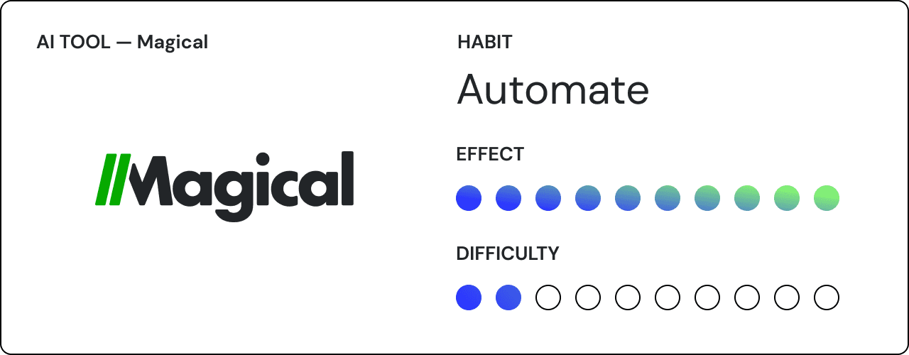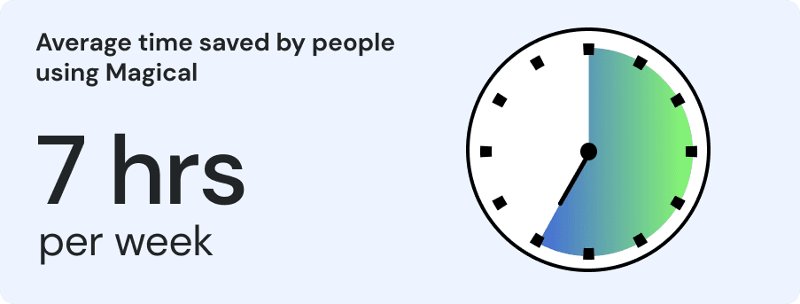 Okay, but that’s in the halls of academia. What about in the real world? Here at Magical, we have over half a million people using our AI-powered productivity app to automate tasks like messaging, data entry, and filling spreadsheets. And every week, these users save an incredible average of 7 hours on these tasks they previously had to perform manually. That’s a 25% increase in their overall productivity—and that’s just from one simple app.