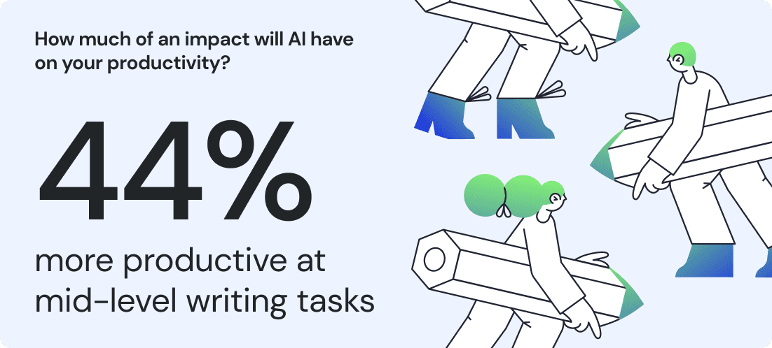 How much of an impact will AI have on your productivity? One research report from MIT has shown that tools like ChatGPT can make individuals up to 44% more productive at mid-level writing tasks. That’s a quantum leap in productivity—and it’s really just the beginning. AI will soon move beyond writing and into every type of task and job imaginable.