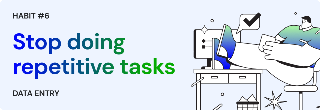 Highly productive people love to say the word “no.” (It’s right up there with words like “Pomodoro” and “5AM.”) But this is one piece of productivity advice that most people aren’t able to put into practice. It’s not because most people wouldn’t love to say no to their mundane tasks like data entry. Rather, it’s because most people can’t say no to these tasks because they simply must get done and because the task is too ingrained in their current workflows.