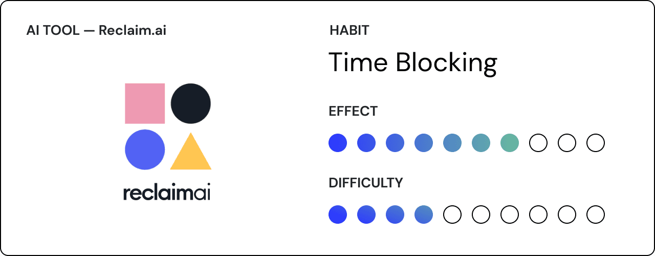 Reclaim will automatically block off time for your tasks, habits, and shuffle around your meetings to help you avoid context switching as much as possible.