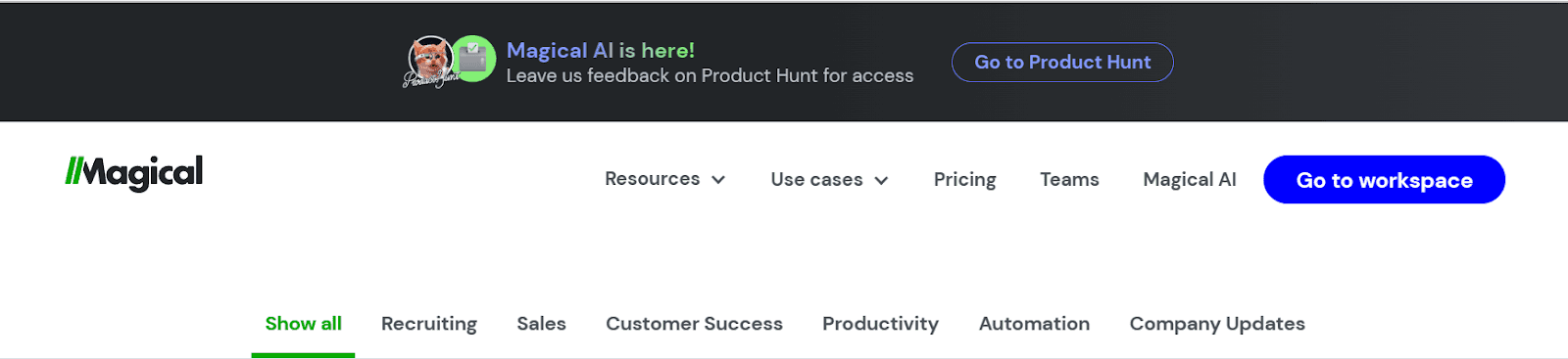 If you’re looking to collect reviews from your customers, putting a banner up on your website—or including a link somewhere (like on your product pages) to leave a review—can help you collect more feedback. For example, here’s how we display a banner on our own website to collect feedback from Magical users: