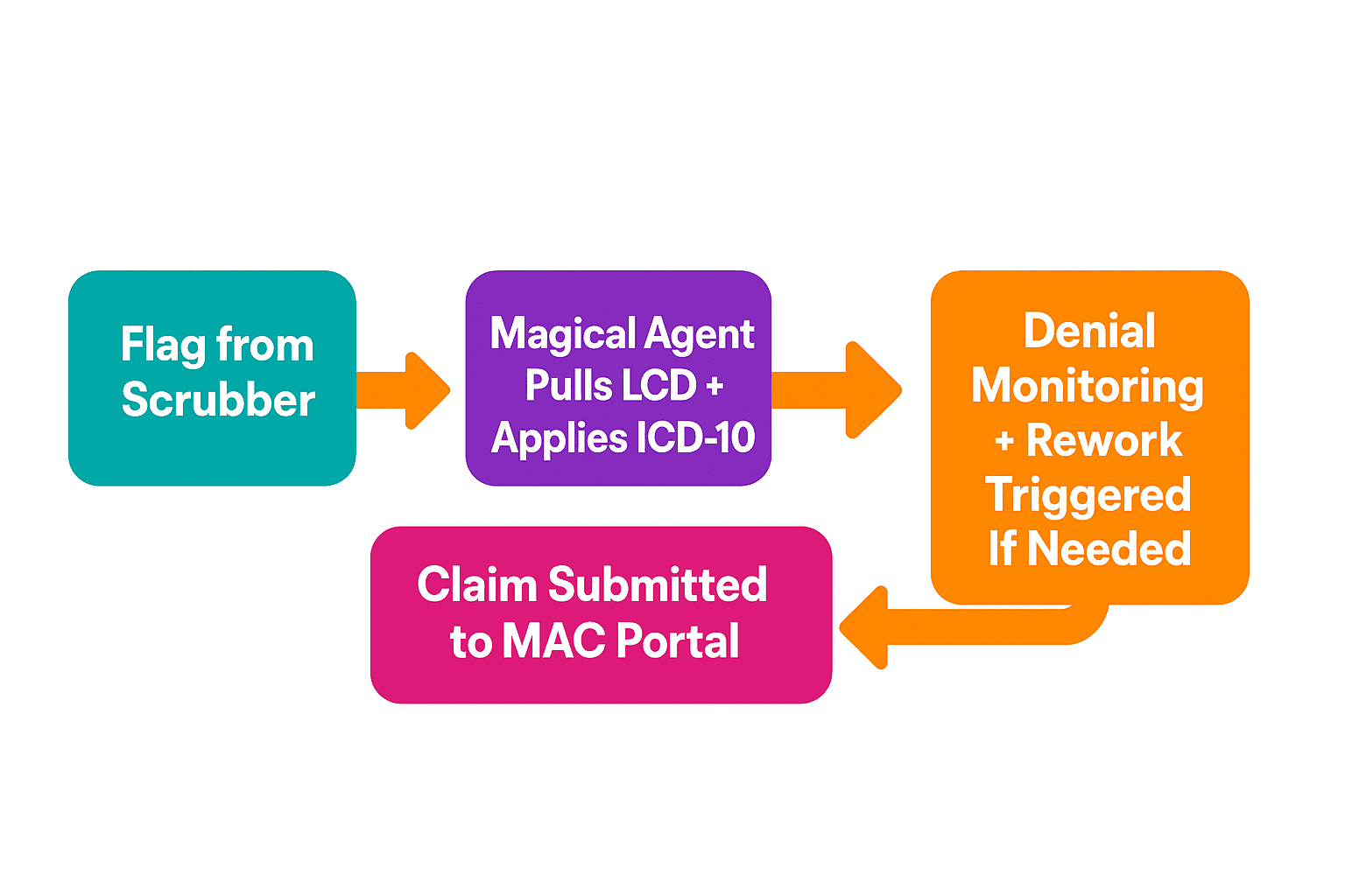 This is where most teams stop. Your claim scrubber flags a CPT–ICD mismatch based on regional LCD logic.