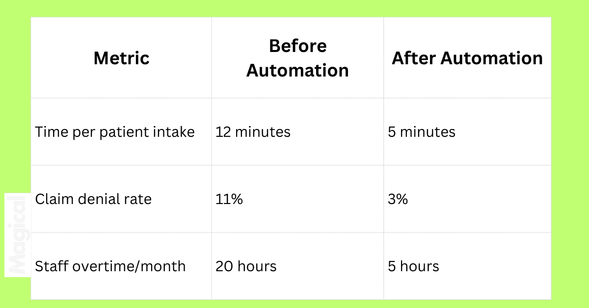 Admin friction shows up in patient outcomes too. Long intake times, billing errors, and scheduling delays all hit patient satisfaction scores.