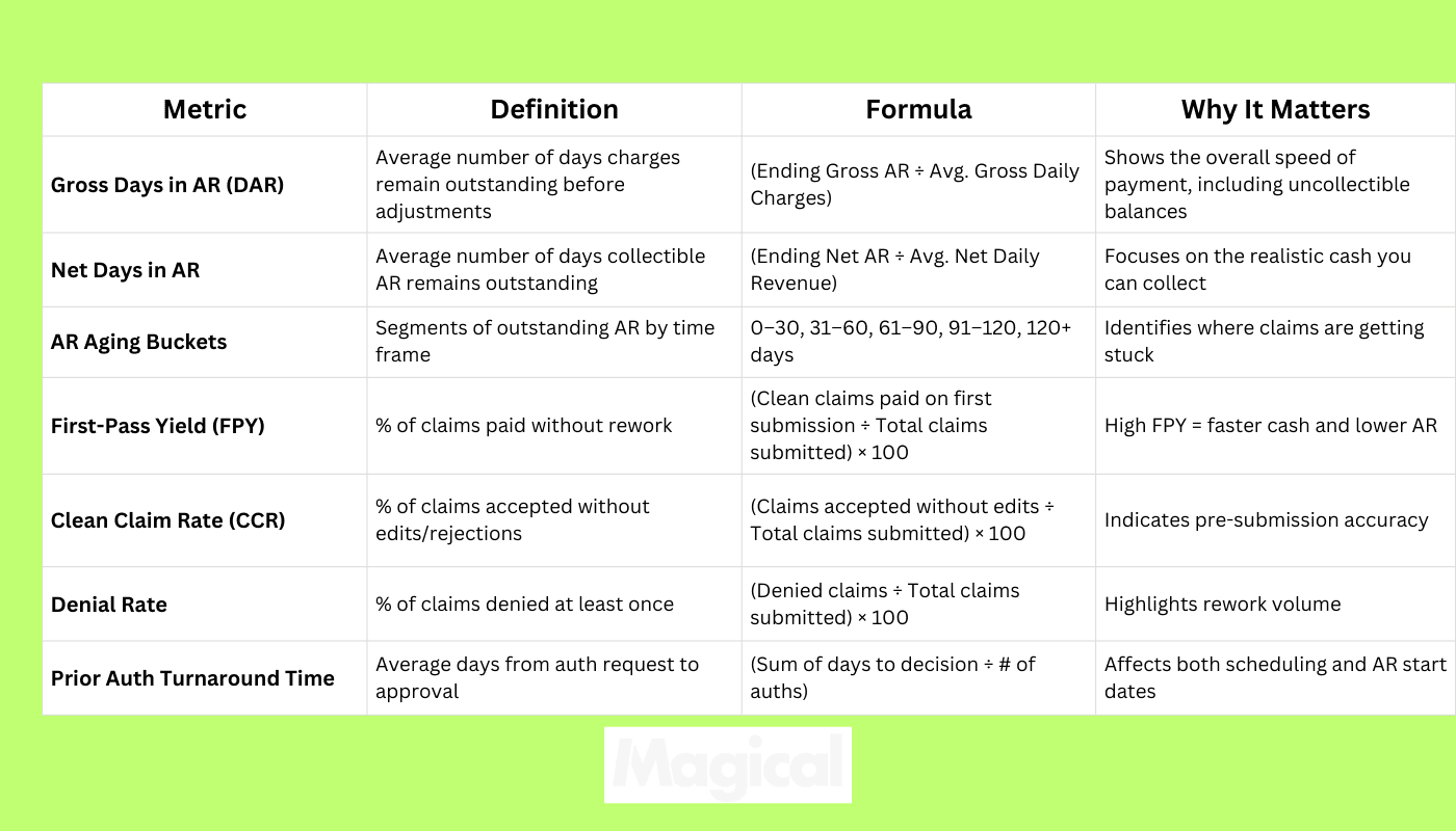 Magical Tip: Track both DAR and FPY together. A short DAR with a low FPY can mean you’re just moving bad claims faster, not actually fixing the system.