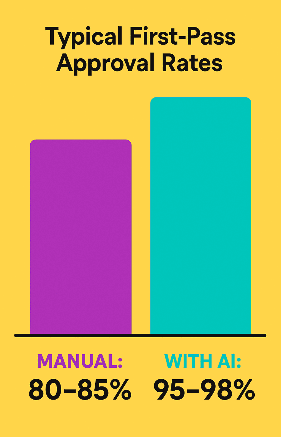 Measure hours saved, first-pass approval rates, and turnaround time improvements in the first 30–60 days. Use those wins to drive adoption across your team.