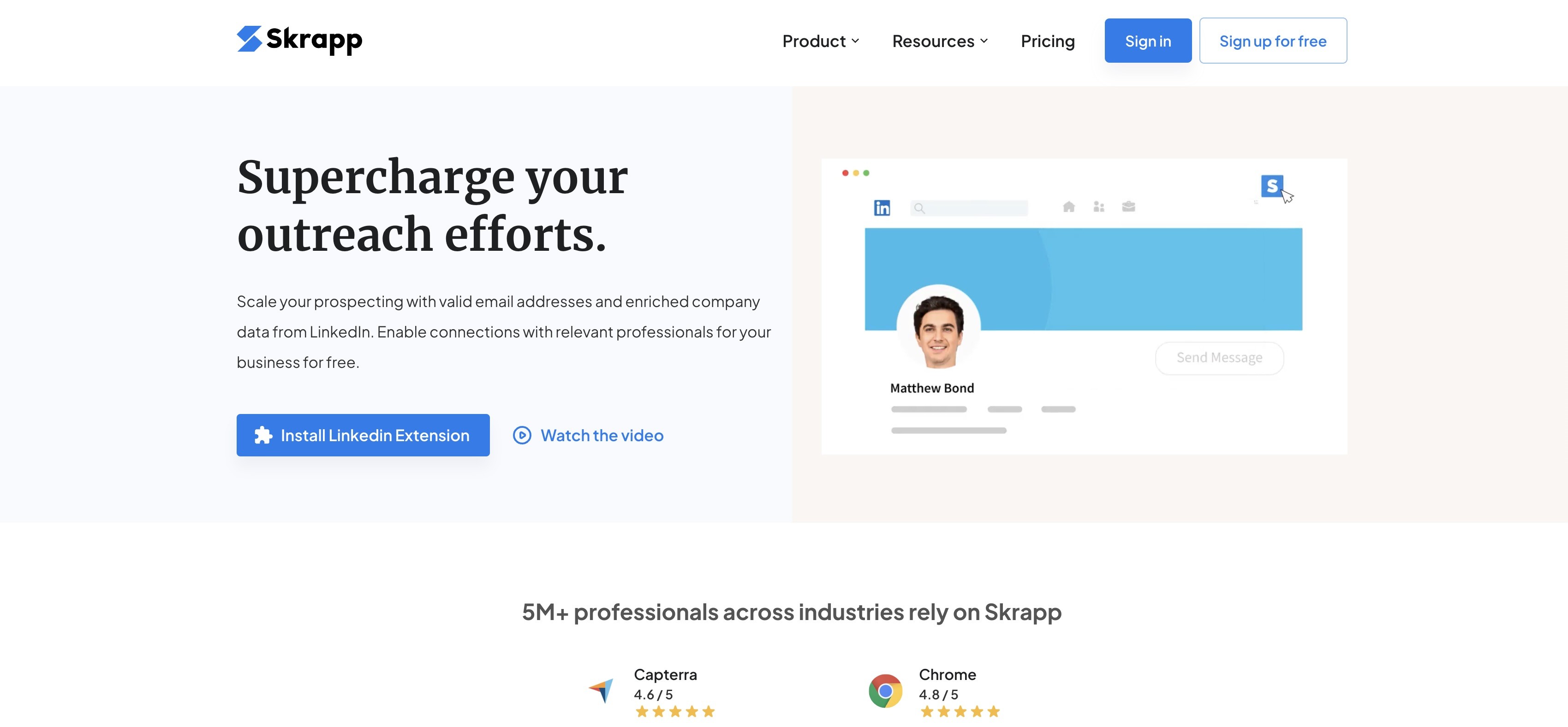 Want to build a targeted prospect list? Skrapp has you covered. It taps into the wealth of data on social media platforms like LinkedIn, surfacing email addresses and other key contact details. With Skrapp, your sales team can focus on the right leads and close more deals.