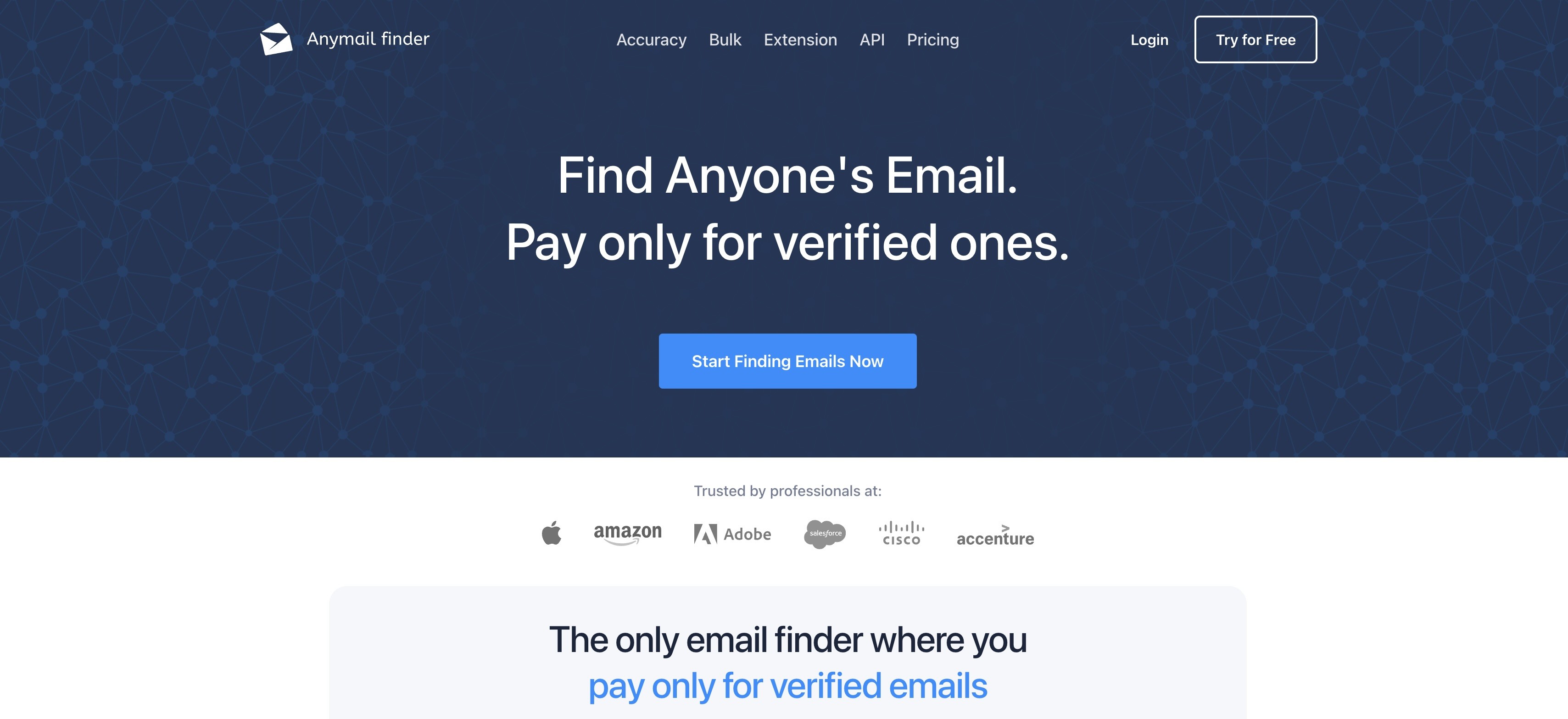 Next up is Anymail Finder, a powerful email lookup tool that's perfect for sales teams, recruiters, and anyone else who needs to find and verify email addresses quickly and easily.