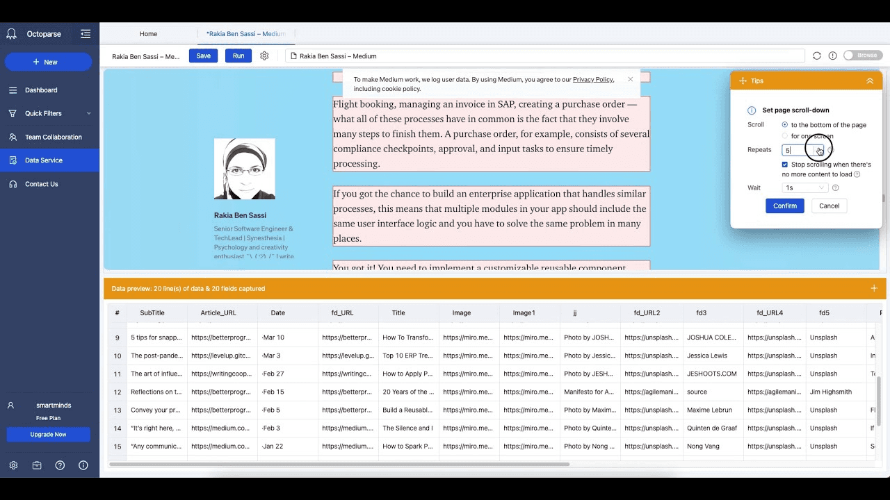 I've been using Octoparse for the past two years and it has consistently proven to be an invaluable tool for my data scraping needs. It stands out for its user-friendly interface. Even without a background in programming, I was able to navigate through its features and functionalities with ease. The tool offers a visual operation pane that is easy to understand and use.