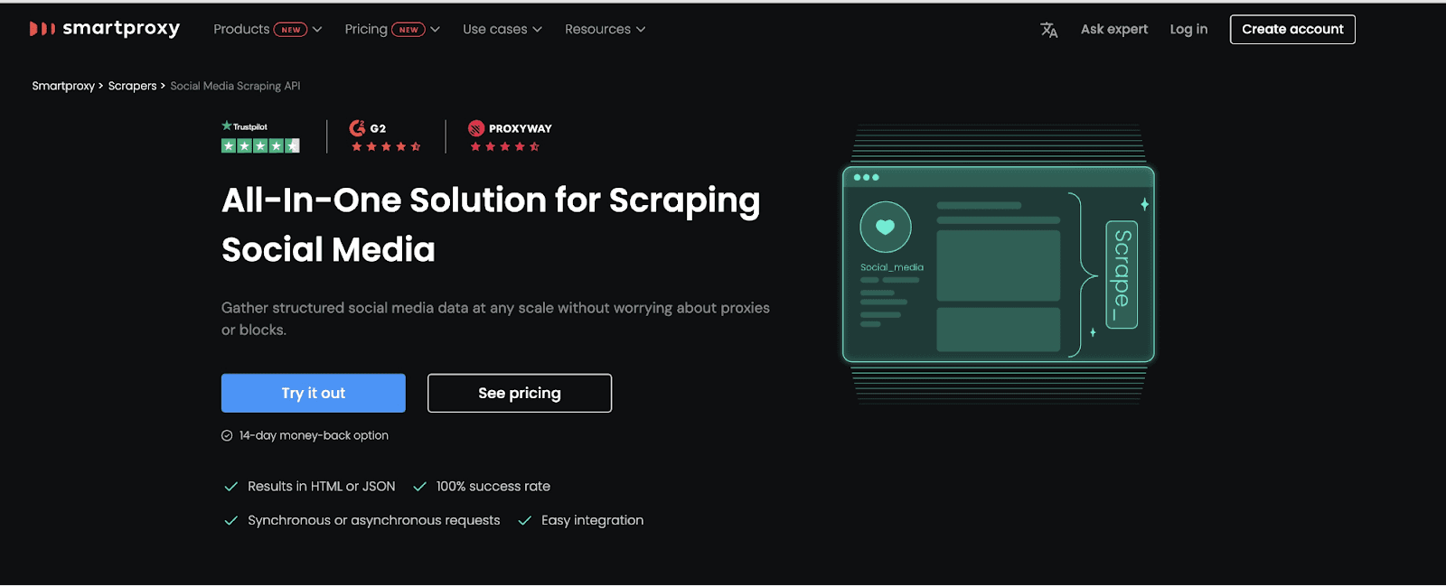 Pricing: Their social media scraper starts at $50 a month