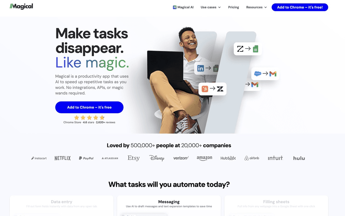 The Magical automation software also integrates well with tools like Scraping Bee enhancing your productivity by automating routine tasks such as scheduling scrapes, data extraction and more.