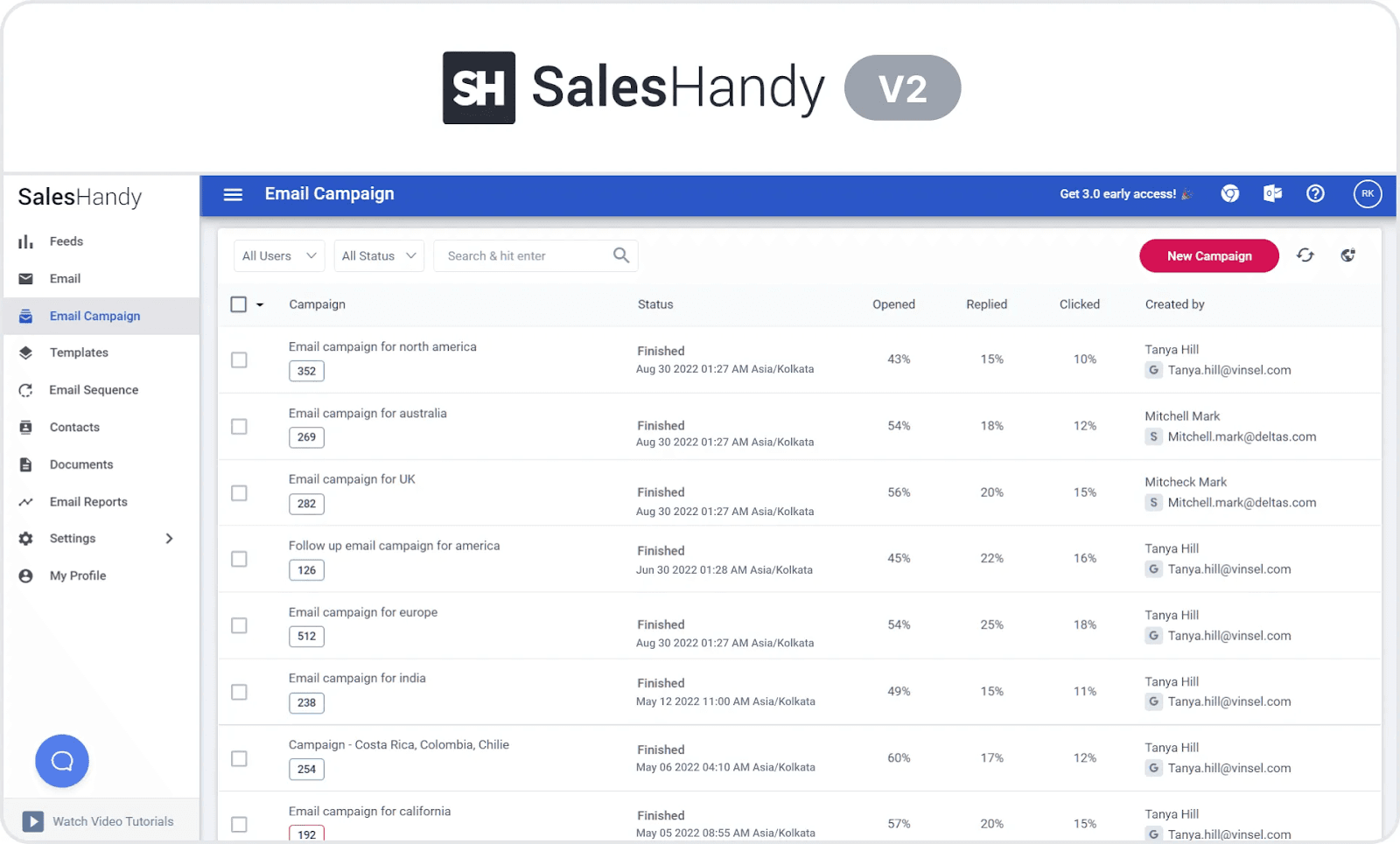 Email Tracking: Provides real-time tracking of email opens, clicks, and replies.