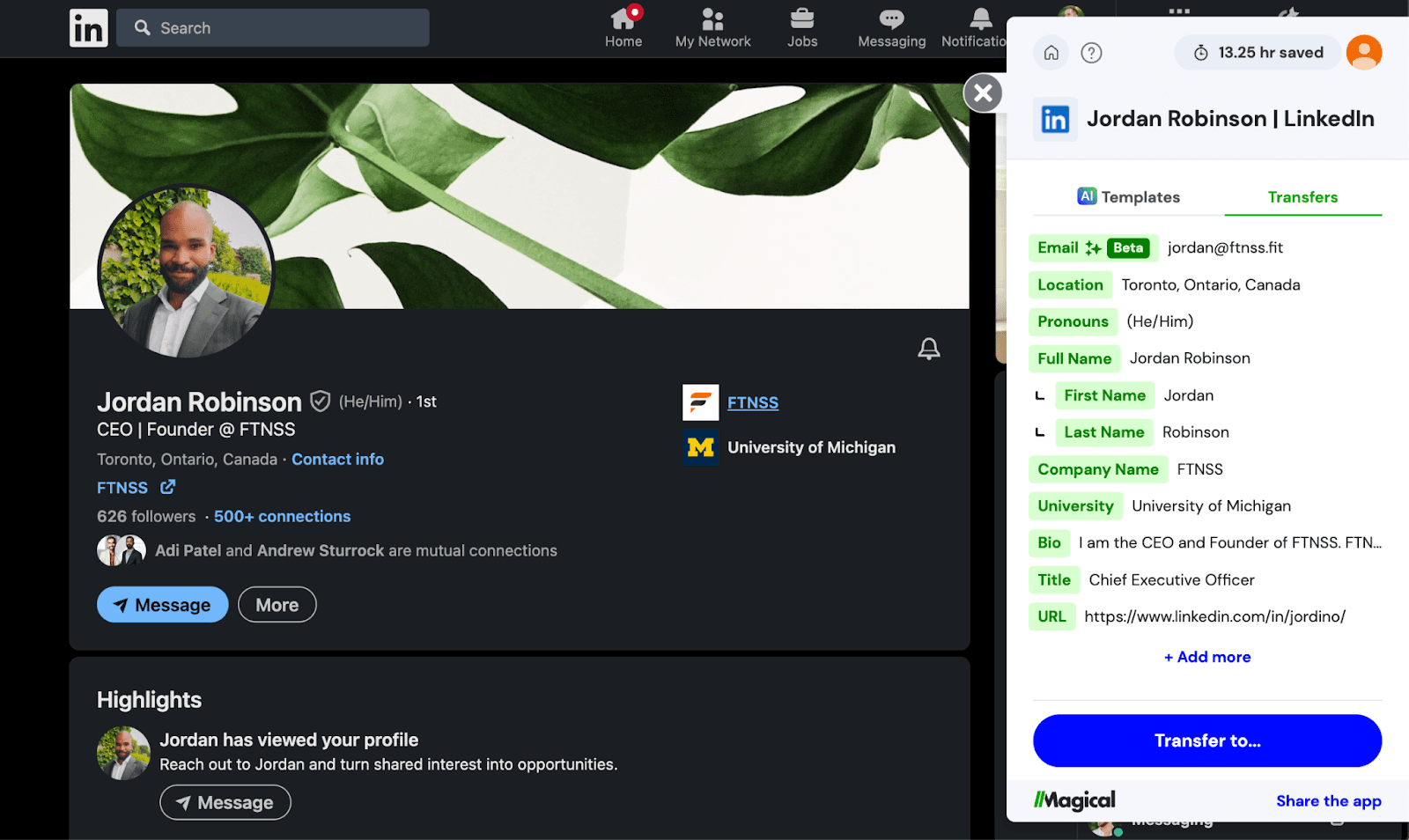 Magical can help you enrich the data you gather and extract it to the places where you need it most (your spreadsheet, CRM, etc.). In other words, Magical can help you get the most out of LinkedIn Sales Navigator.
